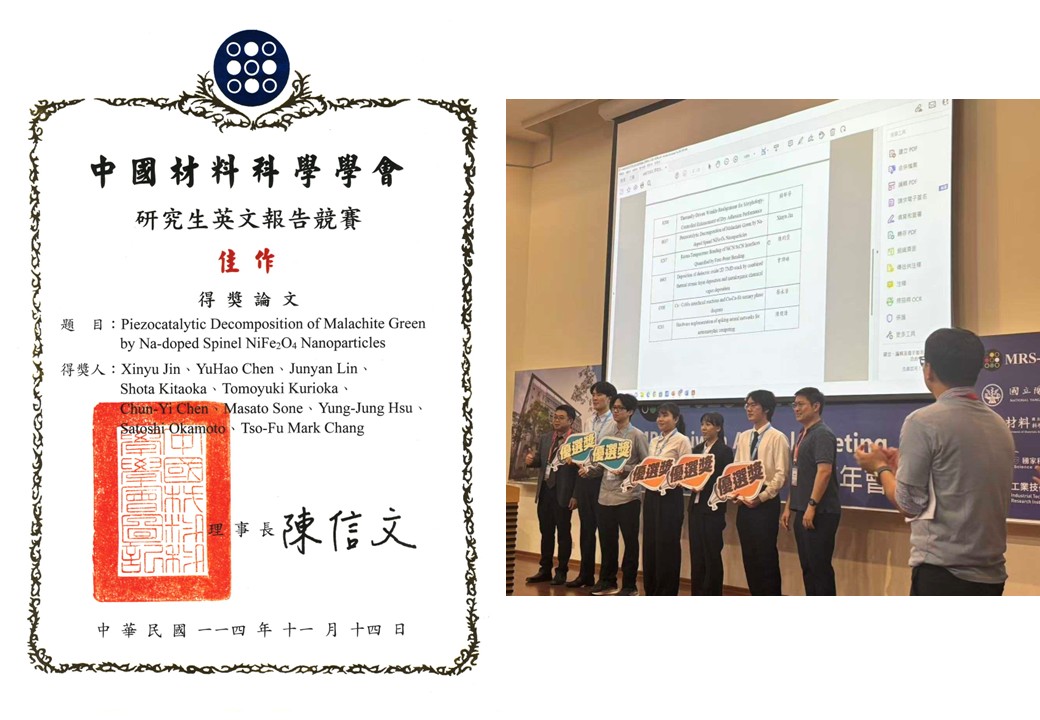 MRST2025において "Honorable Mention in the English Presentation Contest" を受賞(曽根・Chang研究室 Xinyu Jinさん)