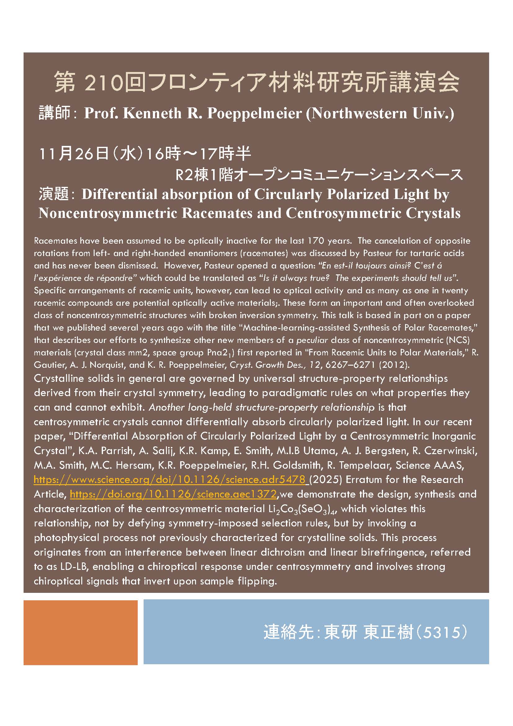 Speaker: Prof. Kenneth R. Poeppelmeier (Northwestern Univ.)