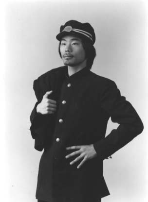 守屋氏の祖父(ということになっている写真の人物)が現役の旧制松本高校生であ った(ということになっている)頃に撮影された1枚の写真である。 その姿は守屋氏と瓜二つであり、松本平の西にそびえるアルペンの高き峰のように雄 雄しくさえ感じられる。守屋氏のバンカラ気風、熱血漢気質はどうやら祖父からの遺 伝によるもののようだ。 ちなみにこの写真は、松本市街の中心を流れる女鳥羽川沿いの商店街、縄手通り付 近の写真館で撮影されたもののようで、守屋氏の祖父(ということになっている人物) はこの写真撮映のために8000円(税抜)も費したという。本人はこの写真の出来 にたいそう満足していたそうだが、見る人ごとにバカにされ、肉親からは 「8000円で、あなたも変態になれる」 などと罵られたという。 しかし、若者にエネルギーを感じない今の時代、こんな写真を撮るために8000 円をも費すその心意気に、私は男の美学を感じずにはいられない。嗚呼、青春!!